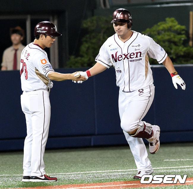박병호는 26일 목동구장에서 열린 ‘2015 타이어뱅크 KBO 리그’ kt 위즈와의 경기에서 팀이 3-1로 앞선 4회말 2사 1,3루 기회에서 정대현의 2구째 체인지업(120km)을 받아쳐 좌중간 담장을 크게 넘기는 장외 스리런포를 작렬시켰다. 맞는 순간 홈런을 직감할 수 있는 비거리 135m의 대형 홈런. 박병호의 시즌 45호 홈런이었다. /krsumin@osen.co.kr