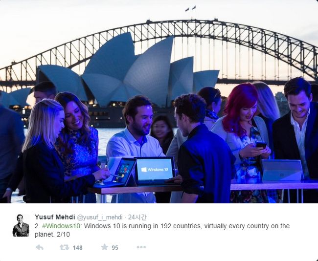 26일(현지시간) MS의 윈도우와 디바이스 담당 마케팅 책임자 유수프 메흐디는 자신의 트위터에 지난달 29일 출시된 윈도우 10이 전 세계 7500만대 이상의 디바이스에 탑재됐으며 이 숫자는 매일 성장하고 있다고 전했다.