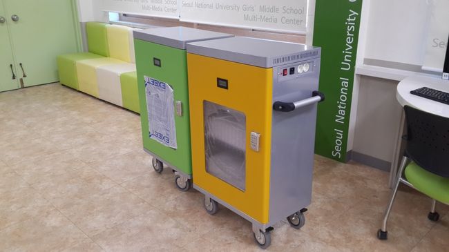 앱코의 '패드뱅크' 스마트충전함은 공공기관, 군부대, 일반기업, 연구소, 세미나장, 박물관미술관 등에서 사용이 가능하고 특히 초?중?고등학교 학생들이 수업용으로 사용하는 다수의 태블릿PC(스마트패드)를 동시에 충전할 수 있다. /letmeout@osen.co.kr