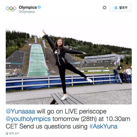 한편 트위터 내 유스올림픽 공식계정(https://twitter.com/youtholympics)을 통해서도 Q&A 참여가 가능하다. 트위터 이용자들은 @youtholympics를 팔로우 하고, 트윗창에 #AskYuna 해시태그를 붙여 질문을 올리면 된다. /letmeout@osen.co.kr