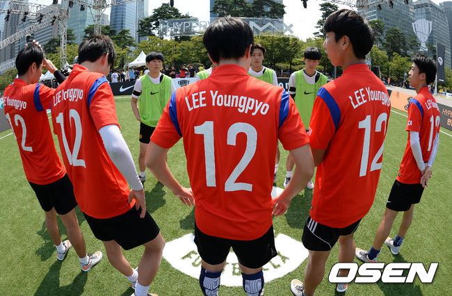 29일 오후 서울 여의도 공원에서 열린 나이키컵 & 나이키 바스켓볼 3on3 대회에서 이영표 유니폼을 입은 청소년 선수들이 경기 시작을 기다리고 있다.