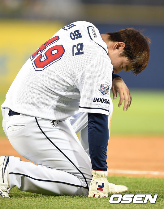 이에 대해 두산 관계자는 "왼쪽 허벅지에 통증이 있는 정도는 아닌데, 오늘 경기하면서 조금 당기는 느낌을 받아 교체됐다. 전력질주를 해야 할 상황이 있을 것 같아 장민석으로 교체됐다"라고 설명했다. 경기는 5회말이 진행 중인 현재 두산이 한화에 4-1로 앞서 있다. /nick@osen.co.kr