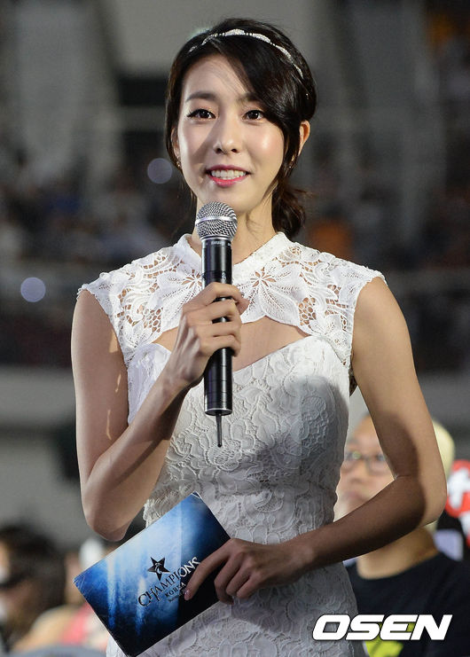 29일 오후 서울 성북구 고려대학교 화정체육관에서 열린 2015 롤챔스 코리아 서머 시즌 결승전 SK텔레콤 T1과 KT 롤스터의 경기, 조은정 아나운서가 인터뷰 준비를 하고 있다.