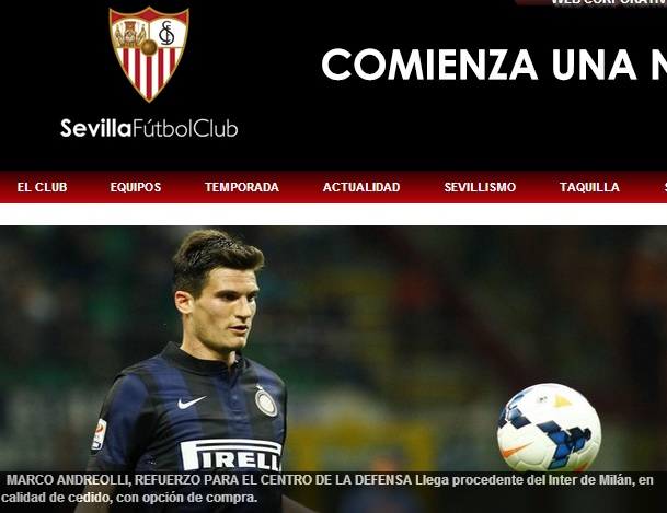 세비야가 인터 밀란 수비수 마르코 안드레올리(29, 이탈리아)를 임대 영입했다.