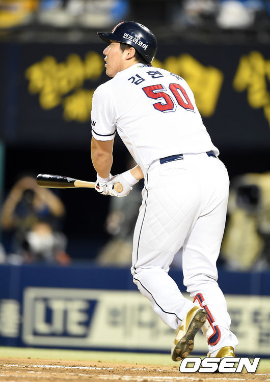 팀의 첫 출루부터 김현수의 방망이에서 나왔다. 두산은 상대 선발 메릴 켈리를 상대로 1회말 공격에서 삼자범퇴에 그쳤지만, 2회말에 선두타자로 나온 김현수가 좌전안타를 치고 나가 타선의 침묵을 깼다. 4회말 2사에는 볼넷을 골라 나간 뒤 도루까지 성공시켰고, 좌중간을 가른 양의지의 2루타에 1-1 동점을 만드는 득점까지 기록했다.