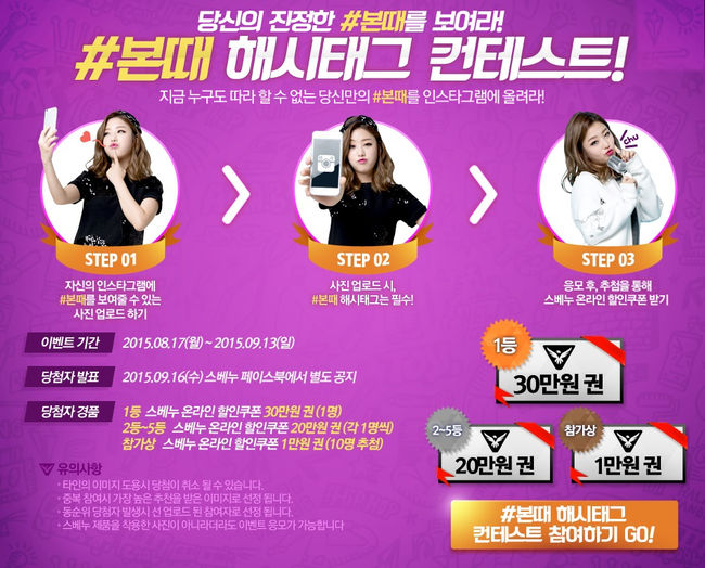 이벤트에 참가를 원하는 사람은 자신의 일상 중 스타일리시한 사진과 함께 해시태그(#본때)를 넣어 자신의 인스타그램에 업로드하면 된다. 응모해준 참가자를 대상으로 추첨을 통해 당첨자를 선정하고 스베누 온라인 할인쿠폰(30만원, 20만원, 1만원)을 경품으로 증정할 예정이며, 당첨자 발표는 오는 16일 스베누 공식 페이스북 계정에서 공지될 예정이다.