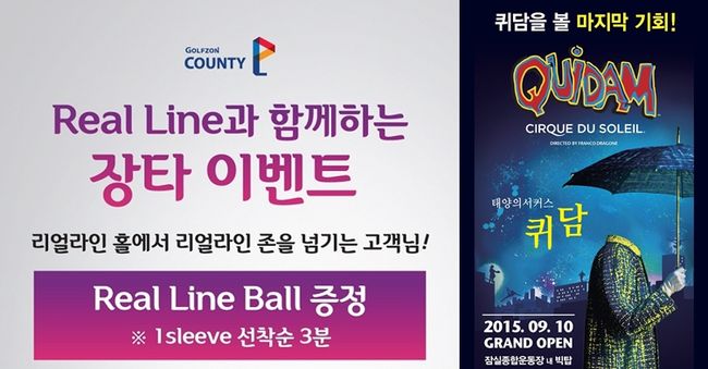 또 골프존카운티 전체 골프장에서는 국내 골프공 브랜드 '리얼라인'과 함께하는 장타 이벤트를 진행한다. 9월부터 1년간 연중 상시로 진행되는 이번 이벤트는 리얼라인 이벤트 홀에서 티샷 진행 후 리얼라인존을 넘기는 이용객을 대상으로 선착순 하루 3명에게 리얼라인 골프공을 증정한다.
