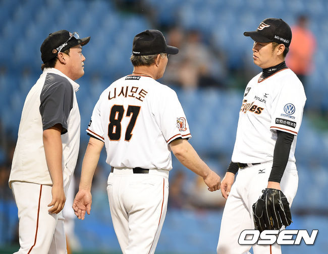 2회에도 불안했다. 선두타자 박동원에게 우익수 오른쪽 안타를 친 뒤 2루에서 아웃됐지만 다음 타자 장시윤에게 안타를 다시 내줬다. 송은범은 결국 공 25개를 던지고 마운드를 김기현에게 넘겼다./autumnbb@osen.co.kr