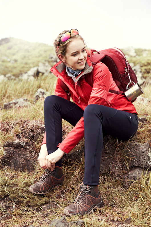 뿐만 아니라 아웃솔에는 하이드로 스토퍼(유리섬유 조직) 소재를 적용해 산행 시 젖은 땅이나 눈과 얼음 위에서도 탁월한 접지력을 발휘해 안정성을 보장하는 것이 특징이다.