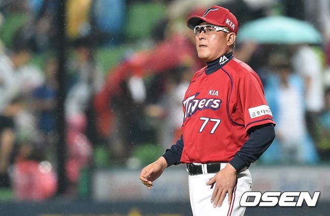 KIA 김기태 감독이 선수들과 인사를 나누기 위해 그라운드로 나서고 있다. /dreamer@osen.co.kr