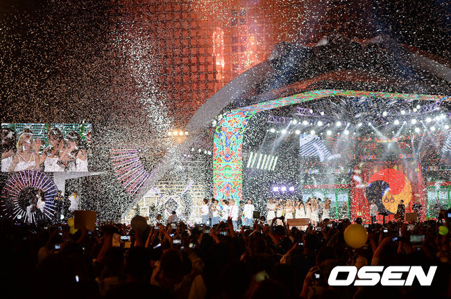 5일 오후 서울 마포구 상암MBC 앞 상암문화광장에서 열린 K-ICT와 함께하는 K-POP 슈퍼콘서트(DMC 페스티벌 슈퍼콘서트, 케이팝 슈퍼콘서트)서 피날레 무대가 진행되고 있다.