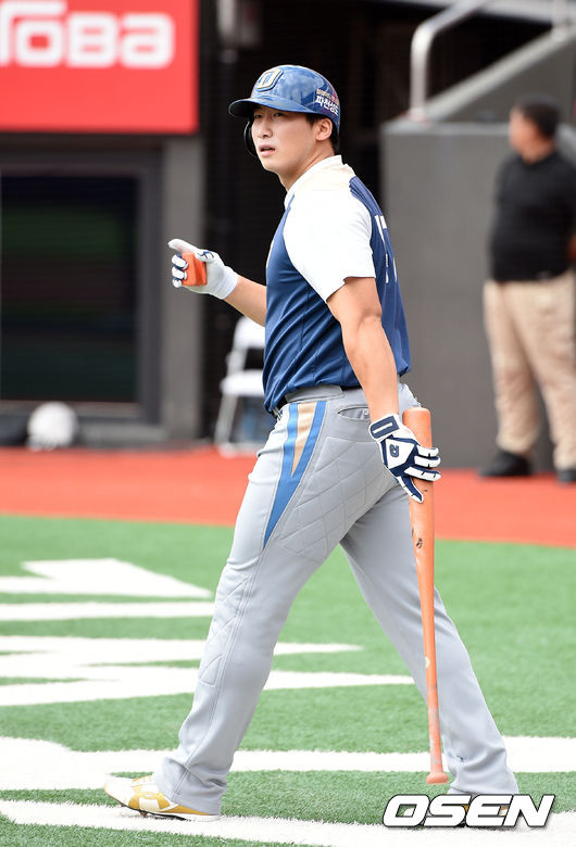 6일 오후 경기 수원 케이티위즈파크에서 열릴 '2015 타이어뱅크 KBO 리그 kt 위즈와 NC 다이노스의 경기에 앞서 NC 나성범이 훈련 케이지로 이동하고 있다.