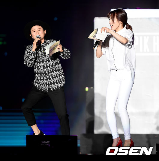6일 오후 서울 마포구 상암MBC 앞 상암문화광장에서 열린 MBC 라디오 DJ 콘서트에서 김신영, 소녀시대 써니가 관객들과 즐거운 시간을 가지고 있다.