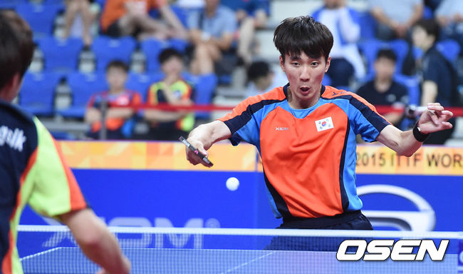 남자 복식 결승전에 앞서 열린 남자 단식 4강전에서 드미트리 오브차로프(독일)에 1-4(11-4 9-11 11-6 11-9 11-7)로 패배했던 장우진은 아쉬움을 남자 복식 우승으로 털어내게 됐다. /sportsher@osen.co.kr