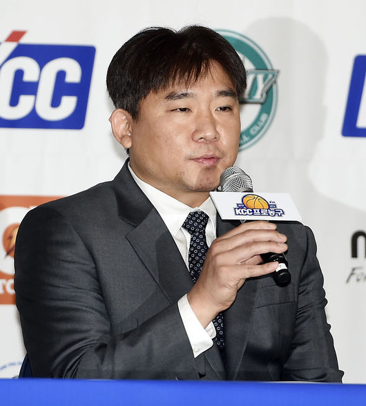 7일 오전 서울 강남구 반포동 소재 JW메리어트호텔 그랜드 볼룸에서 열린 2015-2016시즌 개막 미디어데이에서 안양 KGC 김승기 감독이 소감을 말하고 있다