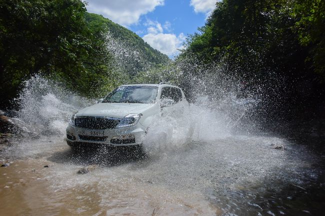 7km 거리의 칼봉산 오프로드는 들어가는 초입부터가 위압적이었다. 대형 SUV 한 대가 겨우 지나갈 만한 산악로에는 온통 돌과 자갈로 뒤덮혀 있고 간간이 작은 계곡도 건너가야 했다. 처음 산길을 접어들 때는 오프로드 주행이 익숙치 않은데다 새 차를 아끼는 마음에 운전이 조심스러웠다.
