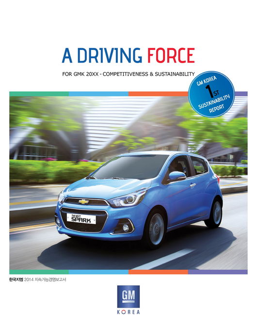 한국지엠이 2002년 회사 출범 이후 처음으로 'A Driving Force' 제호로 발간한 지속가능 보고서는 지난 14년간 국내 최대 외국인 직접투자기업 중 하나로서 소임을 다해온 한국지엠의 사회책임경영에 대한 자료를 바탕으로 완성됐다. 한국지엠은 발간된 보고서가 회사 경영의 핵심 가치인 '고객, 관계, 탁월성'에 대한 정보를 담고 있다.