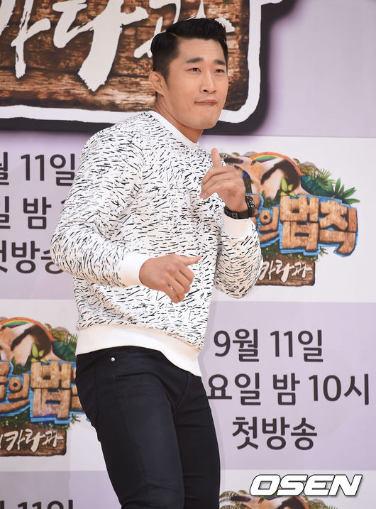 9일 오후 서울 목동 SBS에서 진행된 SBS '정글의 법칙 in 니카라과' 제작발표회에서 김동현이 포토타임을 하고 있다.