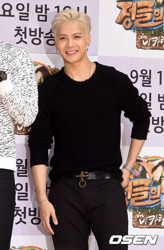 9일 오후 서울 목동 SBS에서 진행된 SBS '정글의 법칙 in 니카라과' 제작발표회에서 잭슨이 미소짓고 있다.