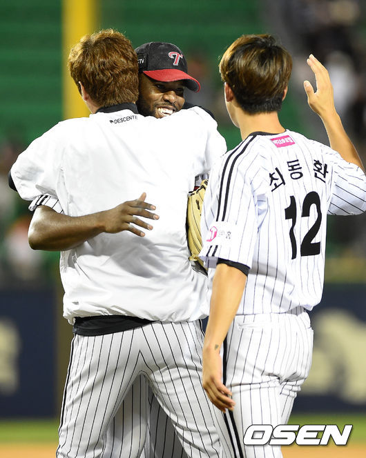 경기후 LG 소사가 우규민과 승리를 기뻐하고 있다./ jpnews@osen.co.kr