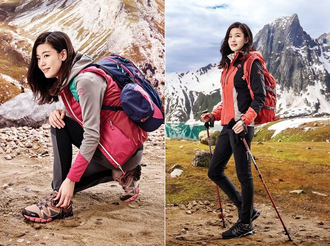 네파 프리미엄 워킹화 전지현 착장 컷, 왼쪽이 프레스토, 오른쪽은 레스토. 아래 사진은 위가 프레스토, 아래가 레스토.
