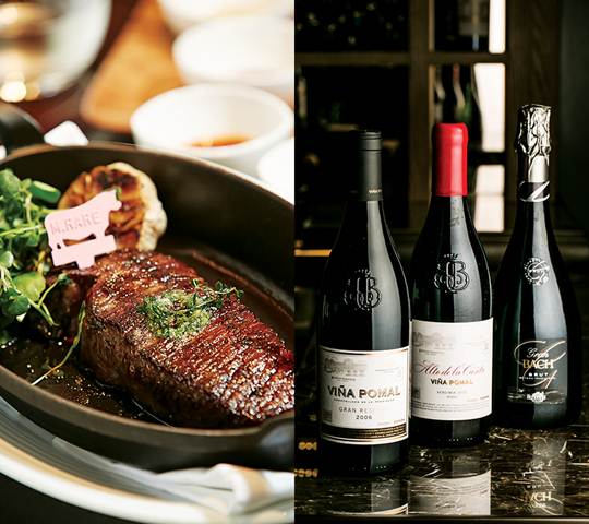 메인 식사인 드라이 에이징 뉴욕 채끝 등심과 함께 즐길 수 있는 와인은 '비냐 포말 알토 데라 까세타(Vina Pomal Alto de la Casera)'이다. 와인 자체만으로도 훌륭한 풍미와 질감을 가져다준다. 깊은 가넷 색깔에 복잡한 아로마가 잘 어우러져 우아한 느낌을 주며 인상적이고, 숙성 과정에서의 바닐라와 스파이스 향이 느껴진다. 팔레트가 넓게 퍼지며 묵직한 모습을 보이면서 균형이 잘 잡혀있고 피니시가 우아한 와인이다. 스페인 정통 리오하 와인의 장점인 완숙하고 육감적이며 이국적인 매력을 지니고 있으며, 최상급 보르도 와인에서 기대할 수 있는 절제미와 부드러움, 활기찬 성질을 조화롭게 가지고 있는 스페인 최고의 와인으로 손꼽힌다.