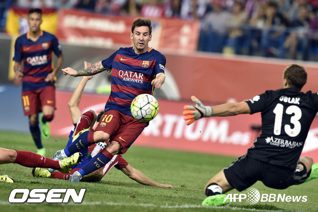 또 바르셀로나는 후반 32분 리오넬 메시가 루이스 수아레스의 패스를 받아 역전골을 뽑아내며 2-1로 경기를 뒤집었다. 결국 바르셀로나는 메시의 결승골을 잘 지키며 승리를 챙겼다. / 10bird@osen.co.kr