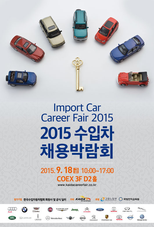 한국수입자동차협회는 9월 18일 삼성동 코엑스(COEX) 3층 D2홀에서 열리는 ‘2015 수입차 채용박람회(Import Car Career Fair 2015)’에서 수입차 업계 멘토 초청, 수입차 채용설명회를 오후 1시부터 2시 30분까지 개최한다.
