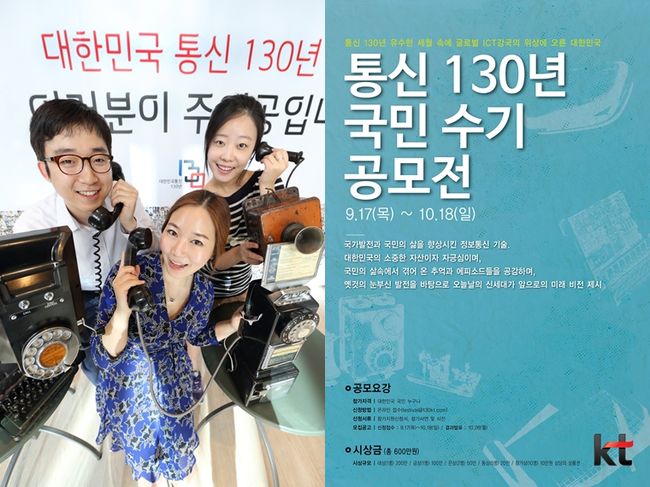 KT가 대한민국 통신역사 130년을 기념하기 위해 온 국민이 함께 참여하는 공모전을 개최한다.