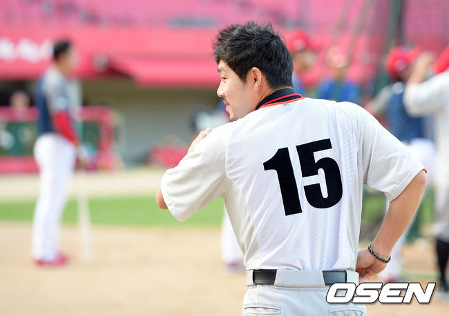 15일 오후 광주-KIA챔피언스필드에서 열릴 '2015 타이어뱅크 KBO 리그' KIA 타이거즈와 한화 이글스의 경기에 앞서 한화 이용규가 그라운드로 나가고 있다.