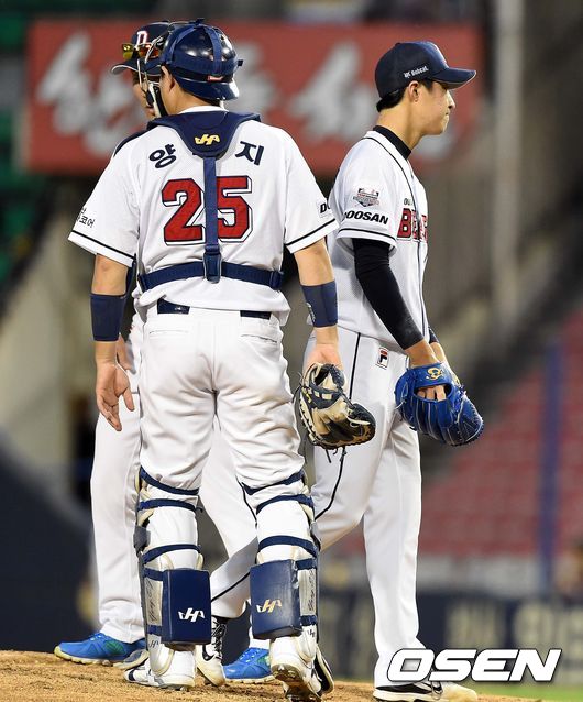 구원 등판한 윤명준이 손용석을 우익수 플라이로 잡아 허준혁의 자책점은 불어나지 않았다. 경기는 1회말이 진행 중인 현재 두산이 롯데에 0-5로 뒤져 있다. /nick@osen.co.kr