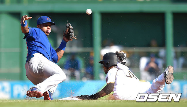 8회말 무사 1루 시카고 컵스 카스트로가 피츠버그 플로리먼의 2루 도루때 송구를 놓치고 있다. / youngrae@osen.co.kr