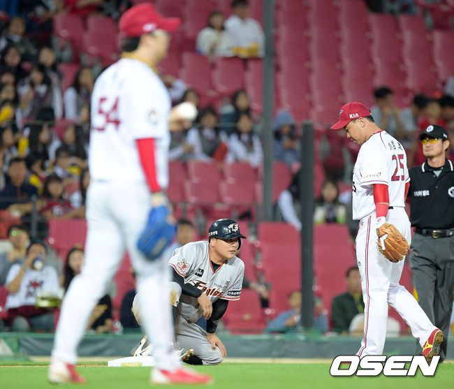2회초 무사 1,2루에서 한화 2루자 김태균이 도루에 성공하고 있다.