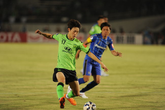 이재성(23, 전북 현대)가 아쉬움에 고개를 숙였다. 전북은 16일 일본 오사카에 위치한 만박기념경기장에서 열린 아시아축구연맹(AFC) 챔피언스리그 8강 2차전 감바 오사카(일본)와 원정경기에서 2-3으로 패배했다. 1차전 홈경기에서 0-0으로 비겼던 전북은 1무 1패를 기록해 4강 진출해 실패했다.
