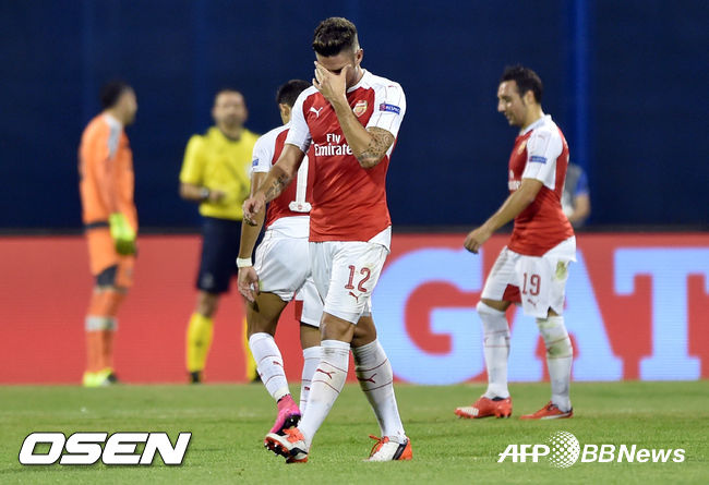 아스날은 17일(한국시간) 크로아티아 막시미르 스타디움에서 벌어진 2015-2016 유럽축구연맹(UEFA) 챔피언스리그 F조 1차전에서 디나모 자그레브에 1-2로 충격의 패배를 당했다.