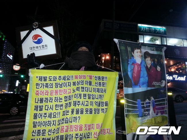 엄 씨는 지난해 겨울 세 찬 바람을 안고 아들의 구명에 발벗고 나섰다. 청와대와 복싱 행사장을 오가며 1인 피켓 시위를 했다. 칼바람이 몰아친 12월 '한국 복싱 100년 기념행사'서 만난 엄 씨는 "종훈이가 링에 꼭 다시 오르게 해달라"고 애원했다.