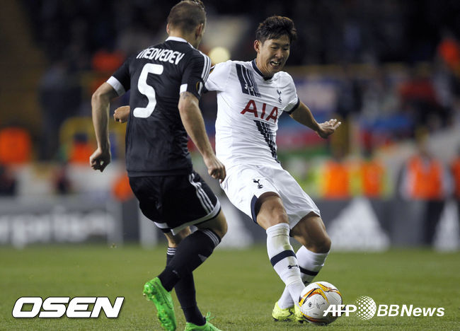 손흥민은 18일 영국 런던에서 열린 2015-2016 유럽축구연맹(UEFA) 유로파리그 조별리그 J조 1차전 카라바흐와 홈경기에서 2골을 터트렸다. 손흥민의 활약 속에 토트넘은 3-1로 승리를 거뒀다.