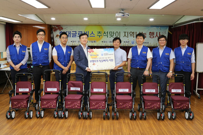 현대글로비스는 복지 사각지대에 있는 지역사회 어르신들이 외출 시 이동에 불편을 겪는다는 소식을 듣고 이 날 어르신들에게 ‘실버카’를 추석 선물로 전달하기로 했다고 설명했다.