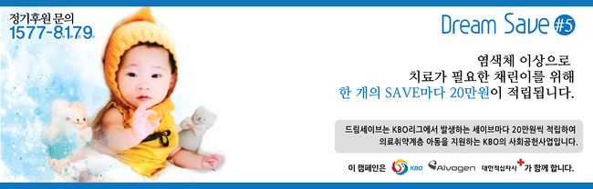 KBO(총재 구본능)와 알보젠 코리아(대표이사 김현식), 대한적십자사(총재 김성주)가 함께 하는 사회공헌 프로그램 'Dream Save'의 네 번째 후원 아동인 이민우(가명, 3세) 어린이에 대한 후원 목표액 1500만원이 달성됐다.