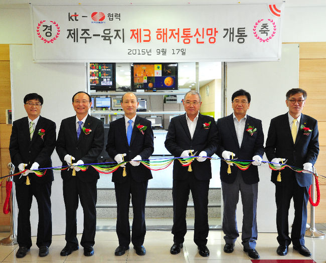 KT(회장 황창규, www.kt.com)는 진도와 제주간 116km에 달하는 제주 제3해저통신망 구축을 완료하고 KT 신제주지사에서 개통식을 가졌다고 18일 밝혔다.