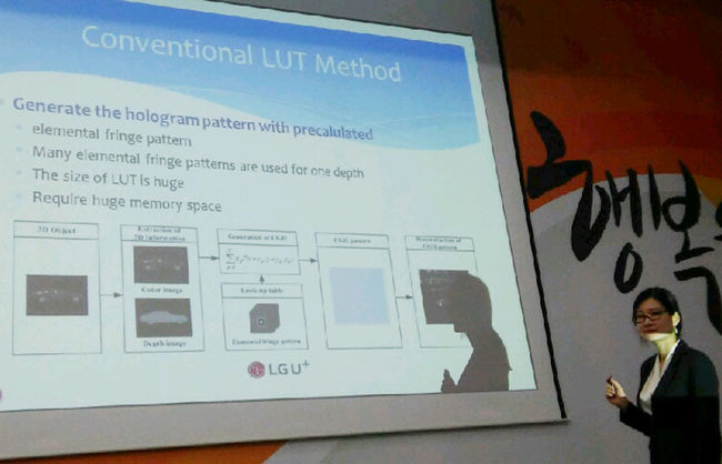 LG유플러스(부회장 이상철, www.uplus.co.kr)는 오는 19일까지 강릉 한국과학기술연구원(KIST)에서 열리는 '디지털 홀로그래피 및 정보과학(Digital Holography and Information Photonics) 2015 한·일 공동워크숍'에서 김선희 박사(LG유플러스 미디어서비스개발팀)가 '홀로그램 고속생성방법'에 대해 연구 성과를 18일 발표했다.