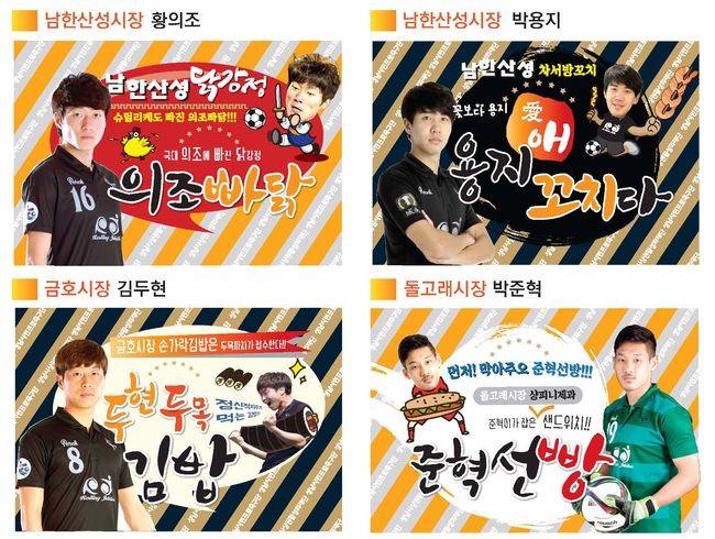 남한산성 시장의 '의조(오)빠닭'과 '용지(애)꼬치다', 금호시장의 '두현두목김밥', 돌고래시장의 '준혁선빵'이 이번에 출시되는 먹거리로 홈경기 당일 경기장에서 판매되며 각 시장에서도 동일 상품을 만날 수 있다.