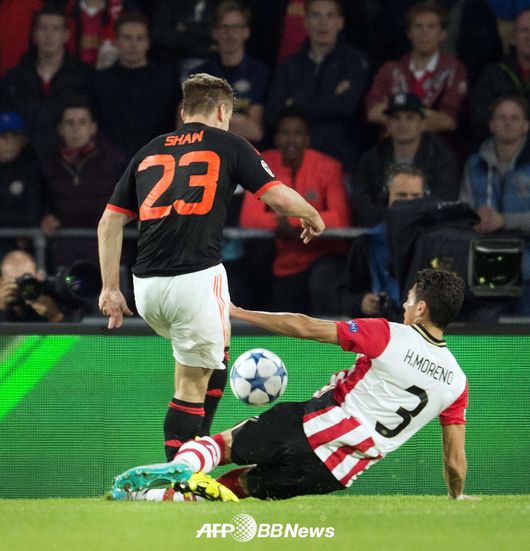 루크 쇼(20)의 이중 골절상 장본인 엑토르 모레노(27, PSV 아인트호벤)가 필립 코쿠(45) PSV 감독과 함께 쇼를 병문안했다.