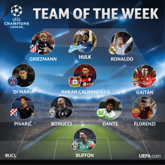 공격진엔 호날두를 비롯해 앙트완 그리즈만(아틀레티코 마드리드)과 헐크(제니트)가 이름을 올렸다. 호날두는 샤흐타르 도네츠크전서 해트트릭을 달성하며 팀의 완승을 이끌었다.