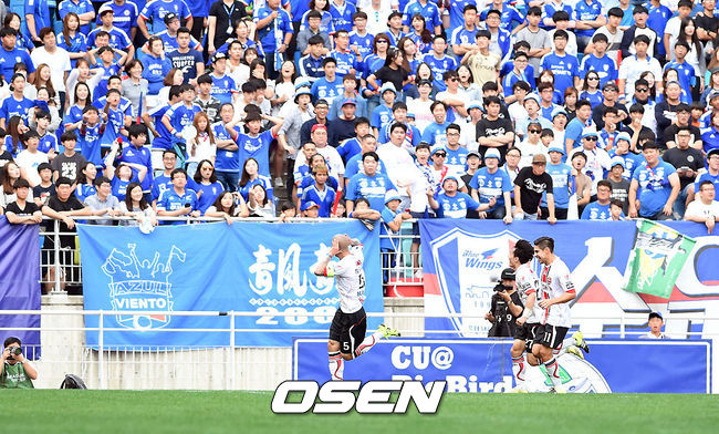 골 세리머니 도중 관중석에서 바나나가 날아와 그의 앞에 떨어졌다. 하지만 차두리는 개의치 않았다. 서울의 모든이가 행복한 순간이었기 때문이다. / 10bird@osen.co.kr