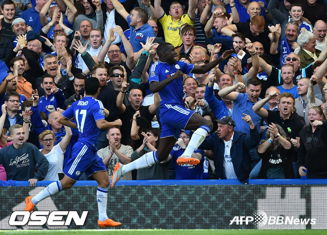 첼시는 19일(한국시간) 밤 영국 런던 스템퍼드 브리지서 열린 2015-2016시즌 잉글랜드 프리미어리그(EPL) 6라운드 홈경기서 조우마와 아자르의 연속골을 앞세워 2명이 퇴장 당한 아스날을 2-0으로 제압했다.
