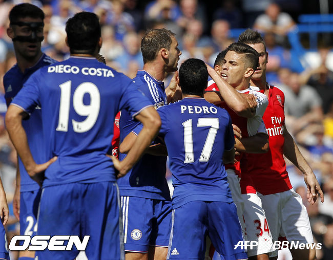 아스날은 설상가상 퇴장 악재가 또 찾아왔다. 후반 33분 경고 한 장을 안고 있던 카솔라가 파브레가스에게 거친 태클을 가해 두 번째 옐로 카드를 받고 퇴장 당했다. 첼시는 후반 추가시간 아자르의 슈팅이 체임버스의 몸에 맞고 굴절, 골문 안으로 빨려들어가며 승리에 쐐기를 박았다./dolyng@osen.co.kr