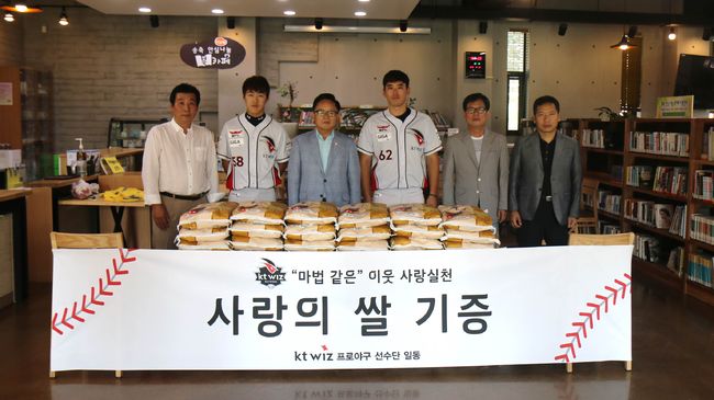 송죽동 주민센터에는 김재윤, 정성곤, 조원1동 주민센터에는 오정복, 김사연, 조원2동 주민센터에는 조무근, 엄상백이 팀 대표로 방문했다. 선수들과 프런트 직원들은 오전부터 수원 케이티 위즈파크와 인접한 송죽동과 조원1동, 조원2동 주민센터를 방문하여 각 쌀 100포(10kg)씩, 총 3톤의 쌀을 kt wiz 프로야구선수단 일동의 이름으로 전달했다.
