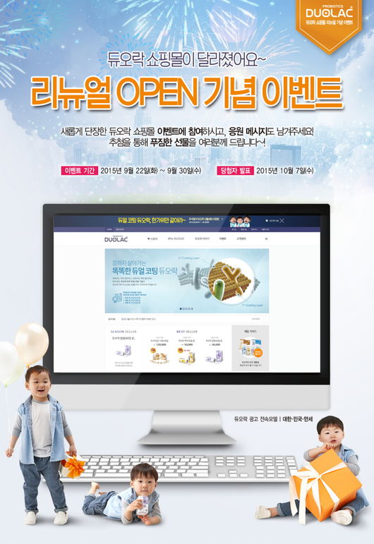 프로바이오틱스 유산균 전문기업 ㈜쎌바이오텍(대표 정명준)이 '듀오락 브랜드 데이'인 22일부터 이달 말까지 자사 온라인 쇼핑몰인 '듀오락몰(www.duolac.co.kr)' 리뉴얼 오픈을 기념하여 다양한 이벤트를 진행한다.