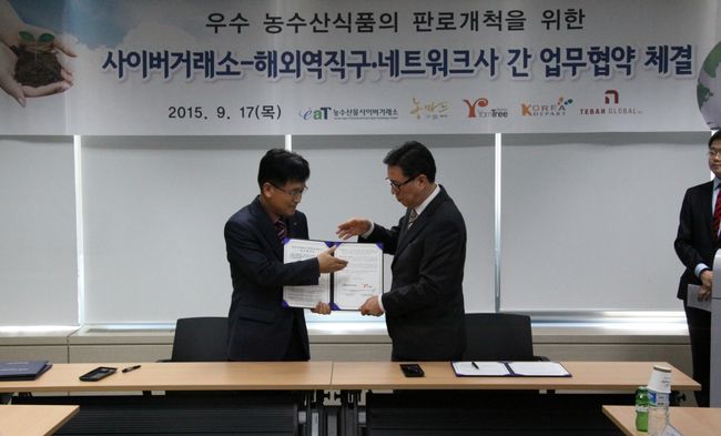 온라인 쇼핑몰 전문기업 얀트리(대표 안진호 www.yarntree.co.kr)는 지난 17일 한국농수산식품유통공사(aT) 사이버거래소와 국내 농,축,수산식품의 판로확대와 해외 경쟁력 강화를 위한 업무 협약(MOU)을 aT센터 본관에서 체결했다.